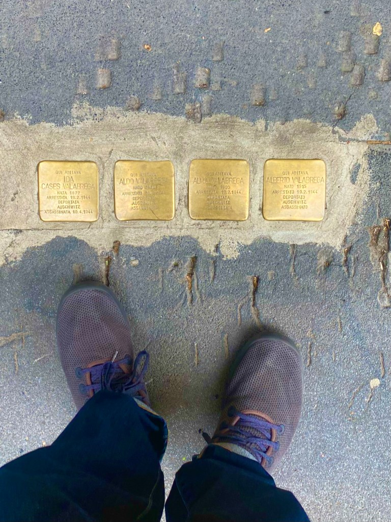 The few days go by in a whirl, museums, churches, restaurants, bars. Prosecco, Gelato & an awful lot of coffee, sight-seeing and schlepping around town. Quite early on I notice those little brass plaques set into the pavement, another reminder of the past that I’ve seen in so many other places, I try not to let them register, but they get to me just a bit and I wonder how it happens all over again, with new players playing a similar game.